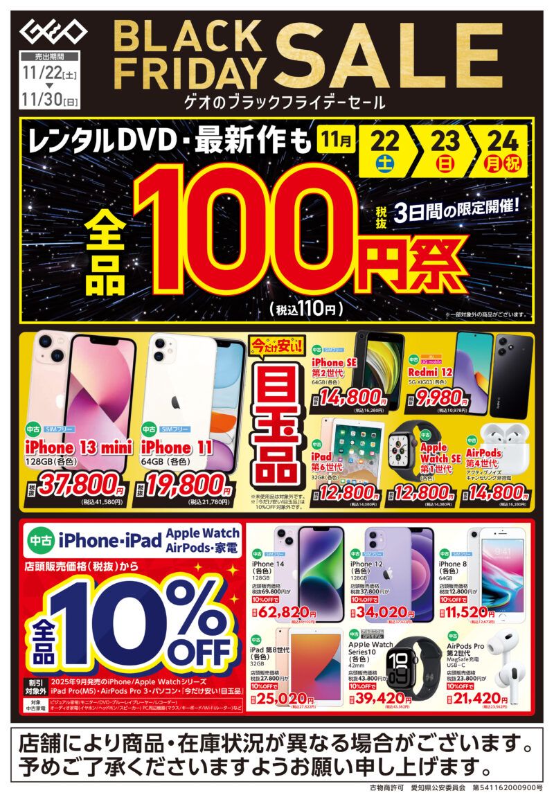 ゲオのブラックフライデー11/19日(金)から28日(日)まで