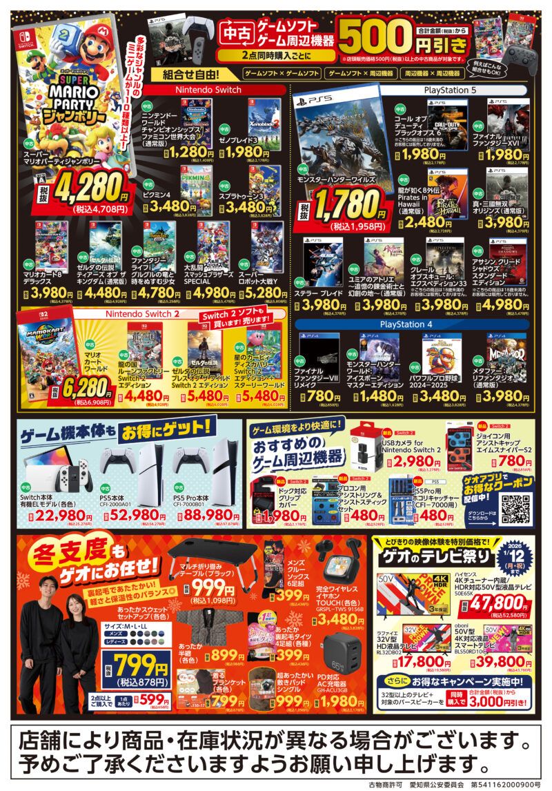 ・中古ゲームソフト・周辺機器2点同時購入ごとに合計税抜金額から500円引き
