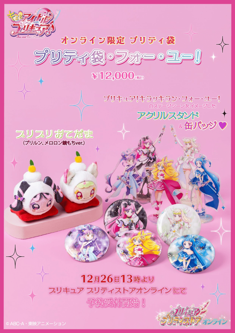 | 備考 | 取扱店舗 常設店(東京・大阪・横浜・越谷レイクタウン・名古屋):12月26日(金)発売 プリティストアオンライン:12月26日(金)13:00~1月9日(金)23:59まで予約販売 |