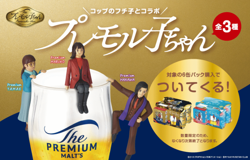 プレミアムモルツ『プレモル子ちゃん × コップのフチ子』フィギュアのおまけがもらえるキャンペーンが開催!