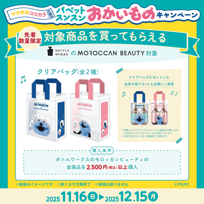 • 「クリアバッグ(全2種)」おまけ!対象商品:ボトルワークス モロッカンビューティ