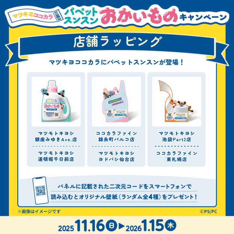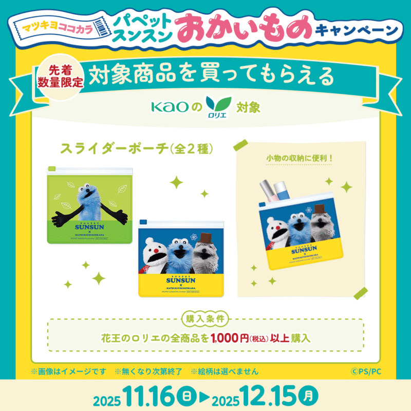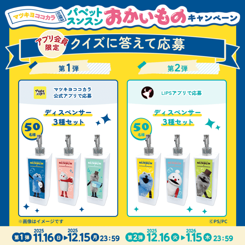 『パペットスンスン』と「マツキヨココカラ」のコラボキャンペーンが2025年11月16日(日)~期間で開催します!