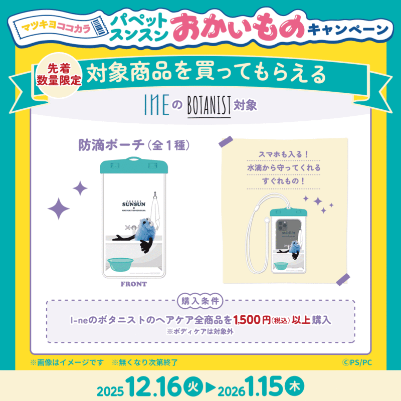 • 「防滴ポーチ(全1種)」おまけ!対象商品:I-ne ボタニスト ヘアケア