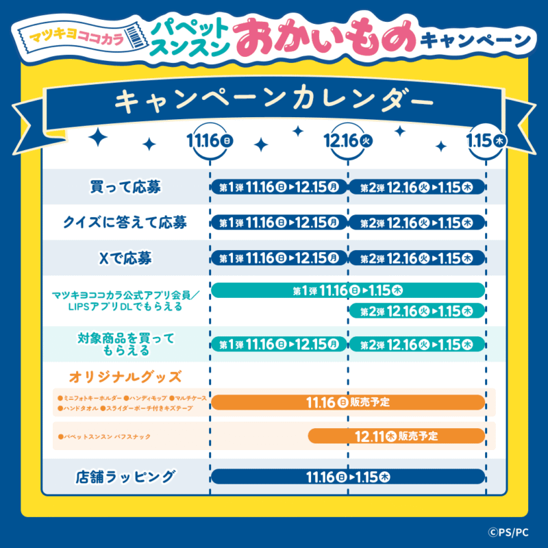 ≪スケジュール・内容≫マツキヨココカラ「パペットスンスン」コラボキャンペーン2025冬~2026年正月