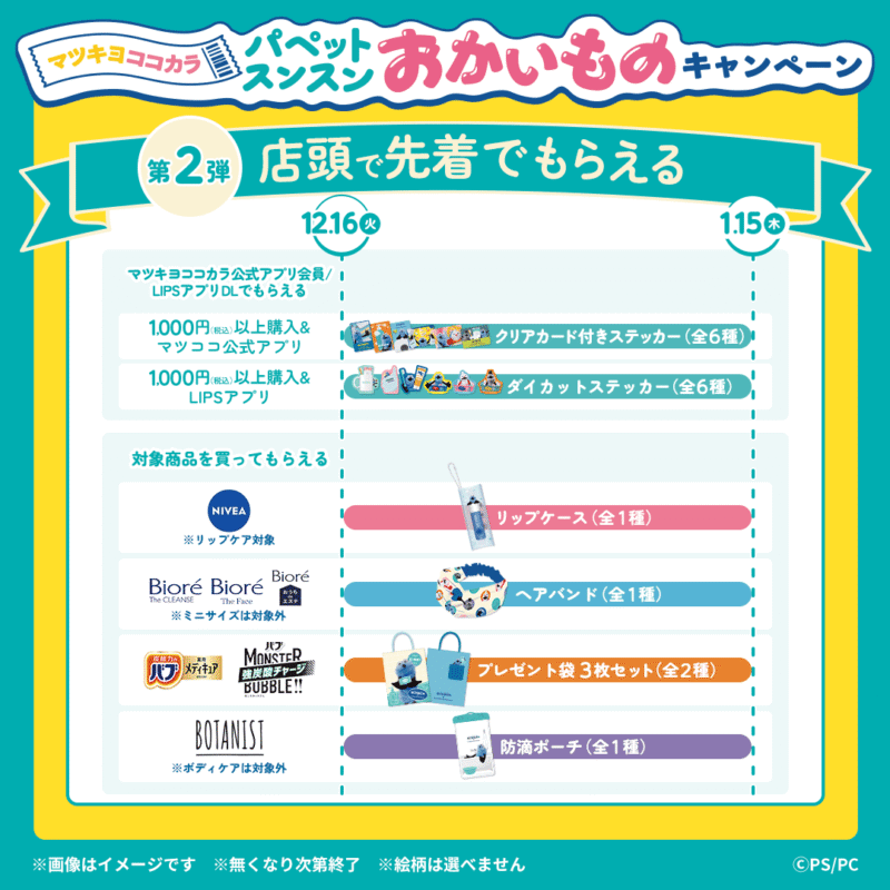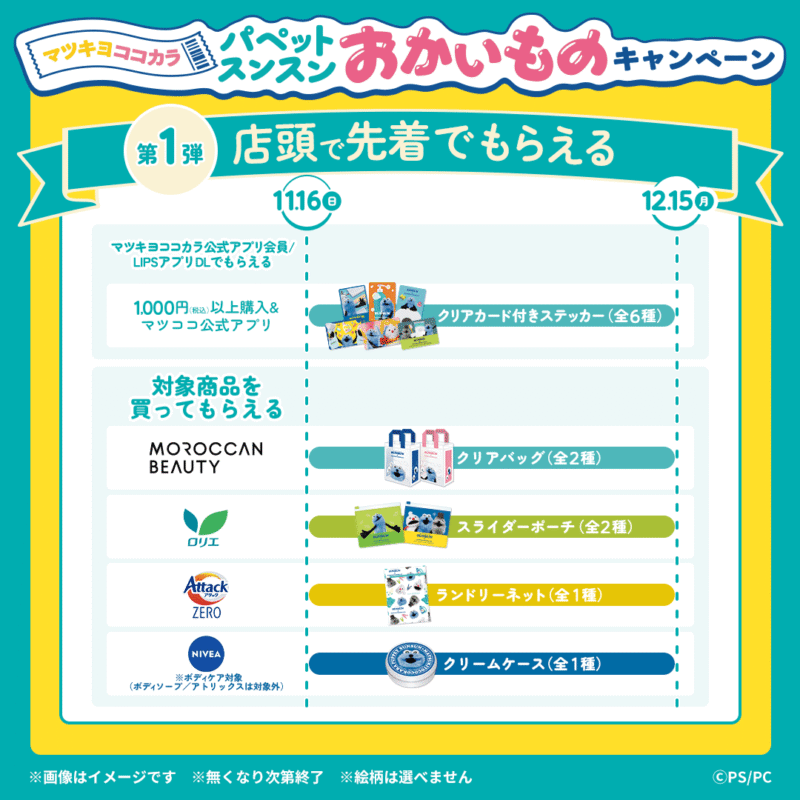 マツキヨココカラ「パペットスンスン」大型コラボが2025年11月、12月、2026年1月に実施!店頭でもらえるおまけ、限定グッズも!おかいものキャンペーン内容、スケジュール、口コミ、売り切れ、販売状況!