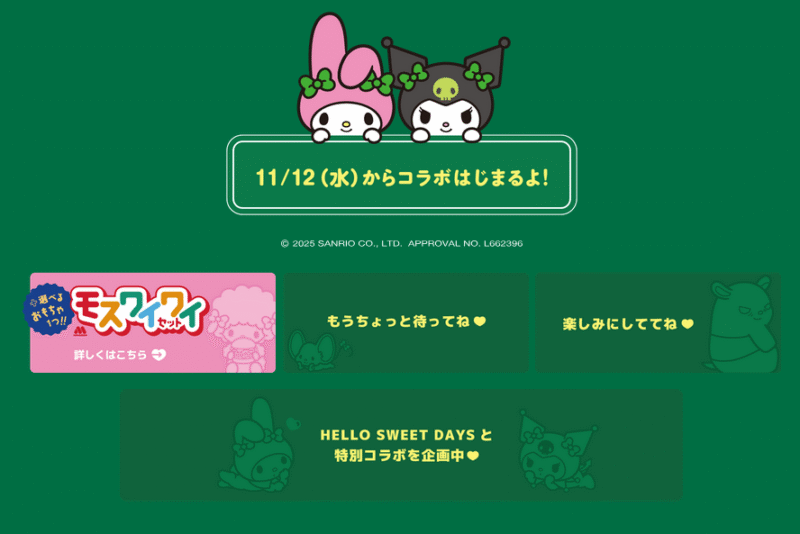 モスバーガーは、2025年11月12日(水)から全国のモスバーガー店舗(一部店舗除く)にて、株式会社サンリオの「マイメロディ」および「クロミ」との複数のコラボレーション企画を期間限定で実施します。