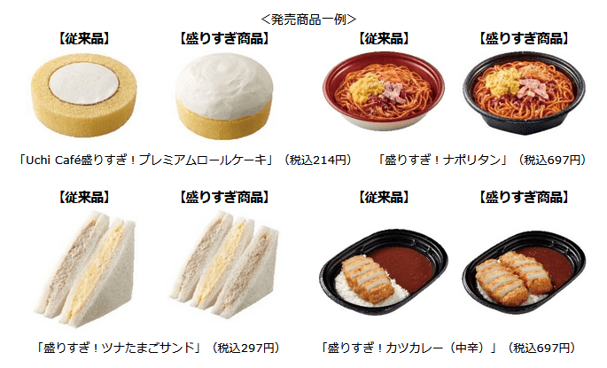 今回の「盛りすぎチャレンジ」では、過去に開催した際に特に人気だった、おにぎり・調理パン・調理麺・店内調理弁当・デザートといった計11品のお得な商品がラインナップ!