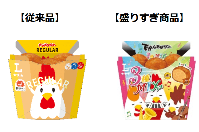 従来品「からあげクンレギュラー(5個入)」と比較して、総重量を約50%増やしました。