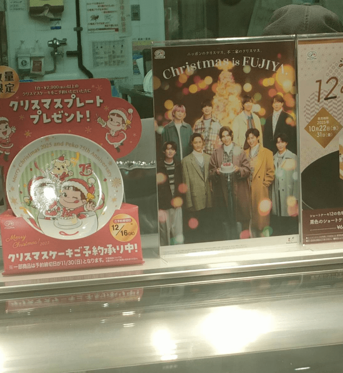 不二家洋菓子店では、「不二家×Snow Man コラボのクリスマスケーキ」を販売します!限定グッズ付きでファン必見です!