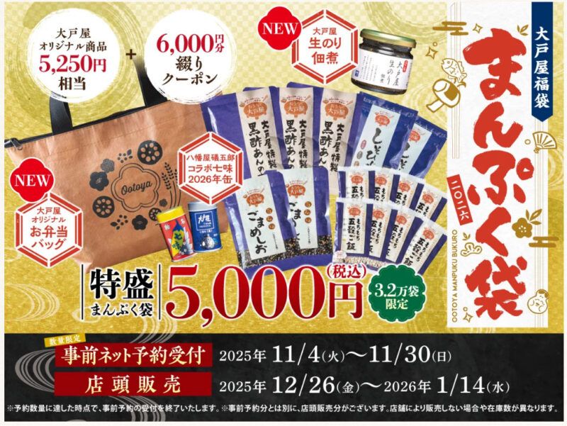 【大戸屋】2026年の福袋 発売日、販売方法、発売場所、通販開始時間