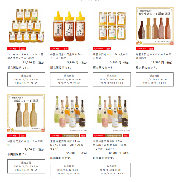【蜂蜜専門店ミールミィ】福袋 最新の発売日、予定、スケジュール