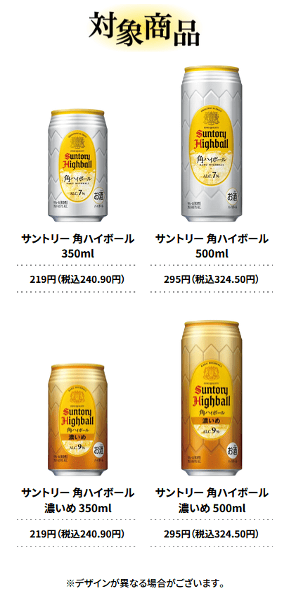 - サントリー 角ハイボール 濃いめ 500ml 295円(税込324.50円)