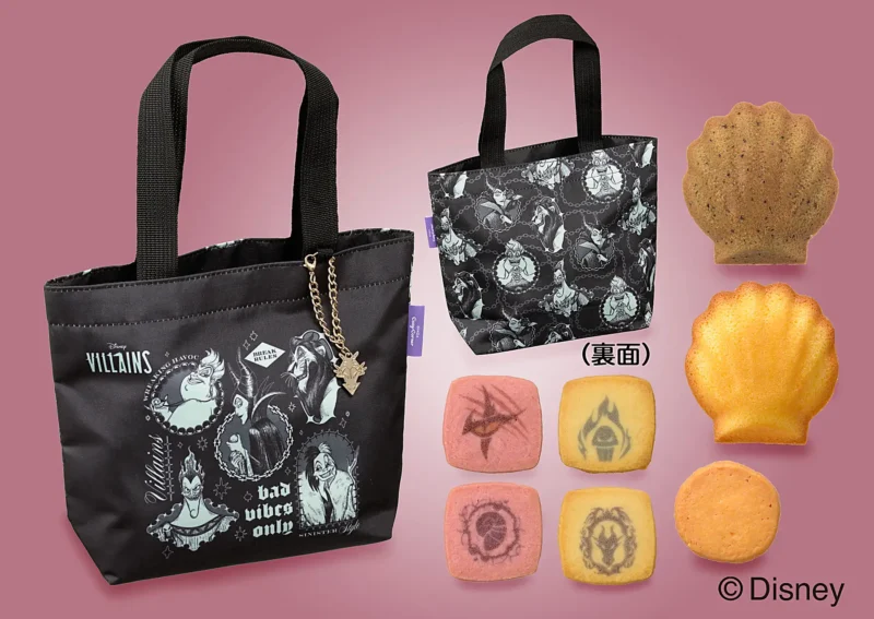 特長:「ディズニーヴィランズ」のダークな世界観をデザインしたバッグに、『リトル・マーメイド』の「アースラ」、『ヘラクレス』の「ハデス」、『眠れる森の美女』の「マレフィセント」、『ライオン・キング』の「スカー」をプリントしたクッキーと、かぼちゃのクッキー、しっとりふんわり焼き上げたマドレーヌをアソートしました。オリジナルのチャームがついたバッグは、ランチバッグとしても使いやすい実用性の高いつくりで、アフターユースも楽しめます。