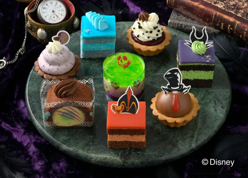 特長:「ディズニーヴィランズ」の魅力を8種のプチケーキで表現しました。