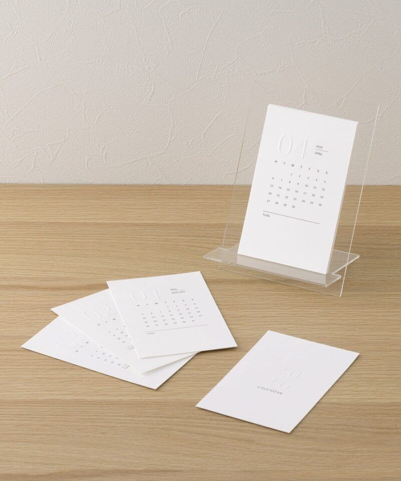 セット内容:12ヶ月分カレンダー(表紙、2026年1月~2026年12月)、土台