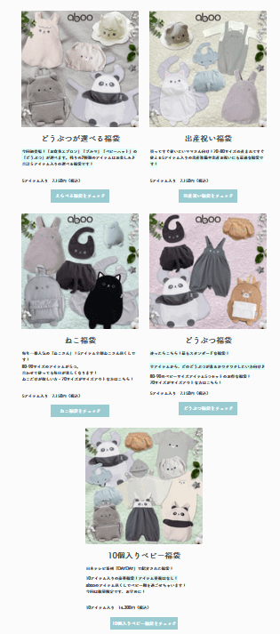 abooの福袋、本日より数量限定・期間限定予約販売開始!