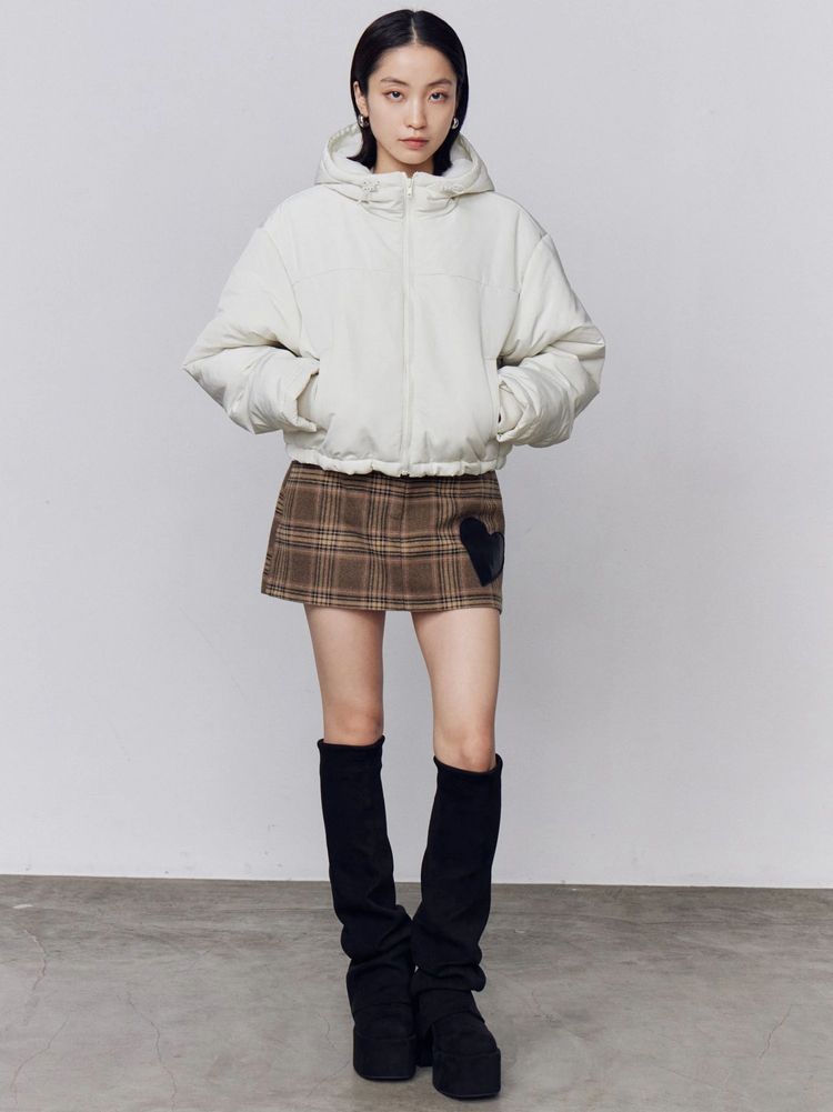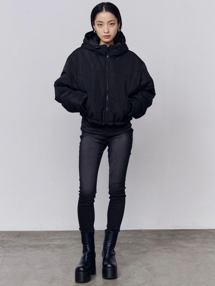 ショート丈を活かしたコロンとしたシルエットは、ミニからフルレングスまで様々なボトムとも合わせやすいです。