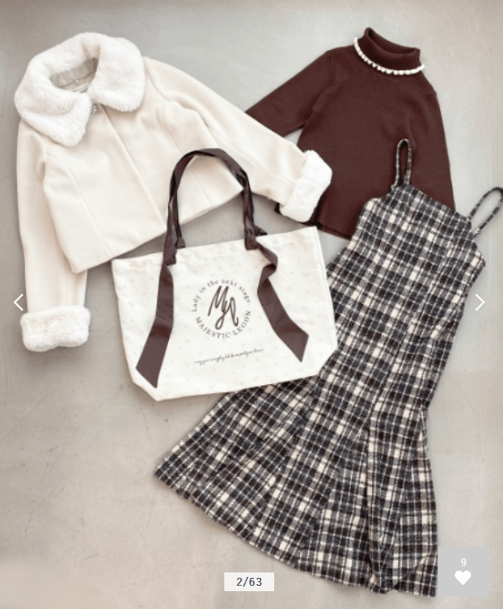 アウター・ニットカーディガン・ワンピース・バッグの4点入り33,000円相当の福袋。