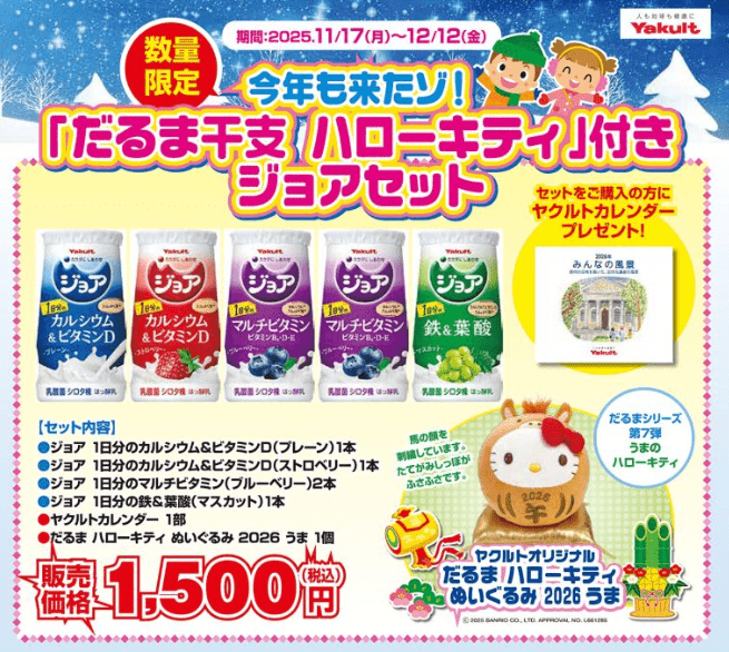 ヤクルトから『だるま干支 ハローキティ』付きのセットが2025年12月より販売しています!
